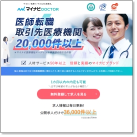 | 「マイナビDOCTOR」独占求人、非公開求人も紹介可能! | |||||||||